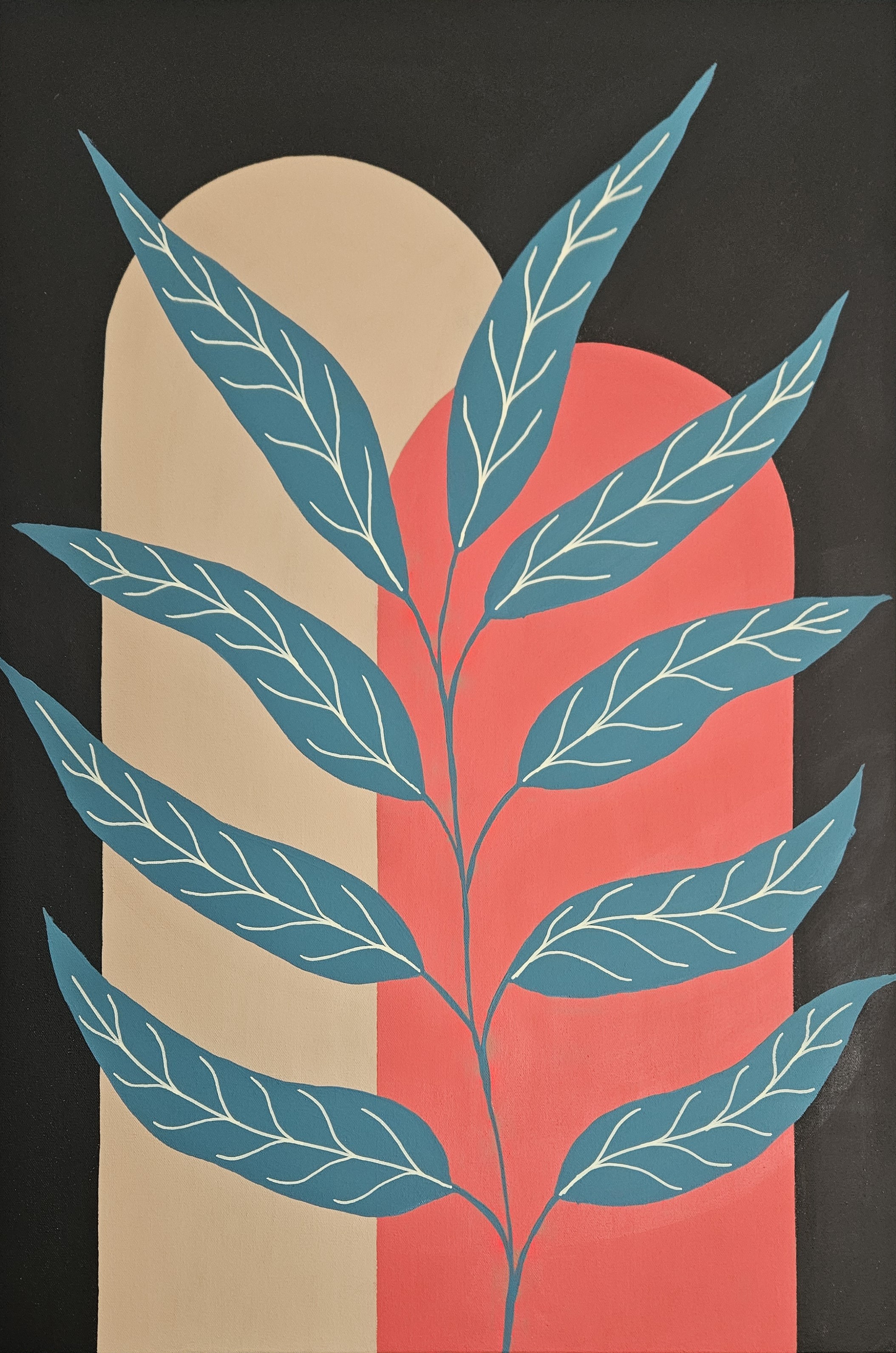 This piece uses bold colours and simple shapes to bring a fresh, modern twist to natural forms.
